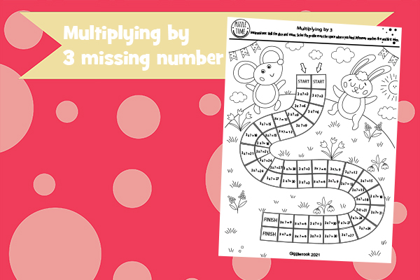 Multiplying by 3 b&w balloons, rabbit race, color