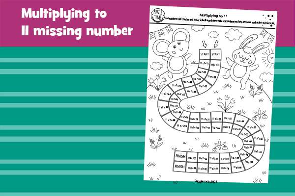 Multiplying by 11 b&w balloons, rabbit race, color