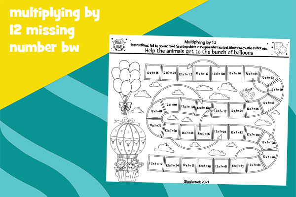 Multiplying by 12 b&w balloons, rabbit race, color