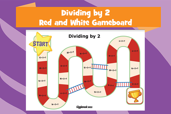 Dividing by 2 Red and White Gameboard