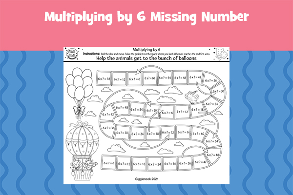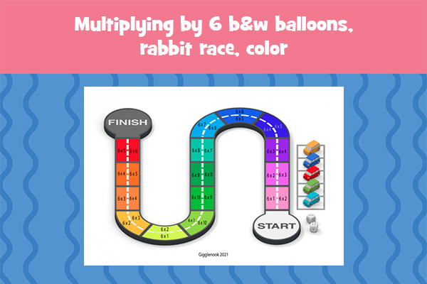 Multiplying by 6 b&w balloons, rabbit race, color