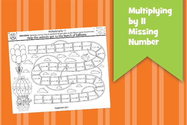 Multiplying by 11 b&w balloons, rabbit race, color