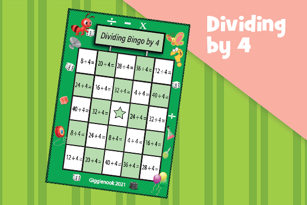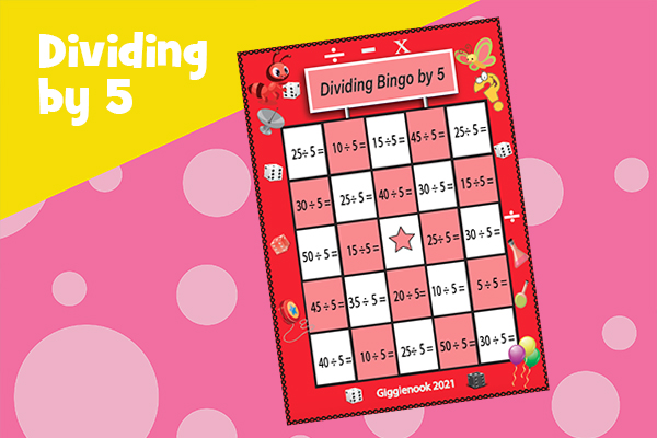 Play bingo to practice dividing by 0-10.