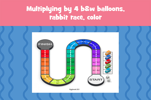 Multiplying by 4 b&w balloons, rabbit race, color