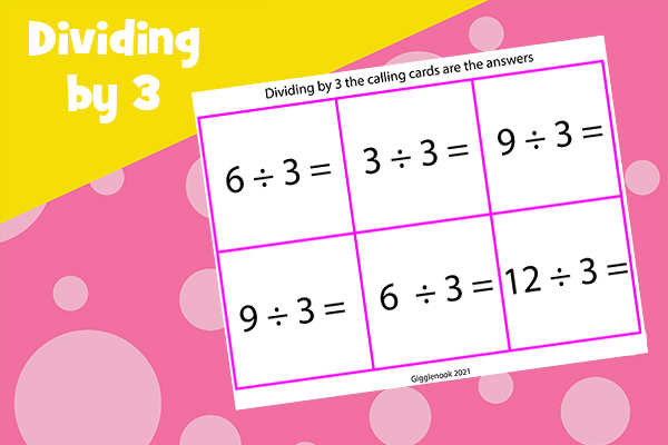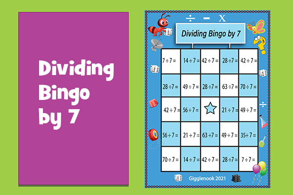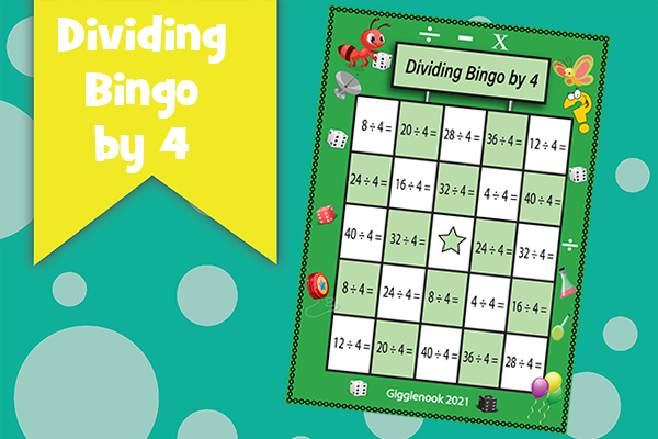 Play bingo to practice dividing by 0-10.