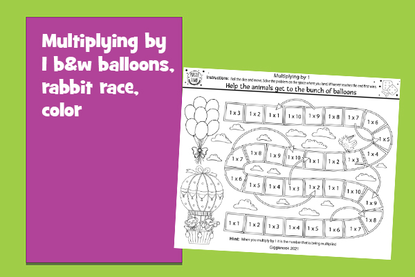 Multiplying by 1 b&w balloons, rabbit race, color