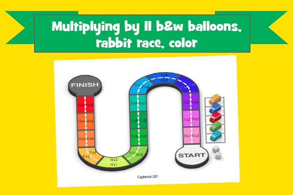 Multiplying by 11 b&w balloons, rabbit race, color